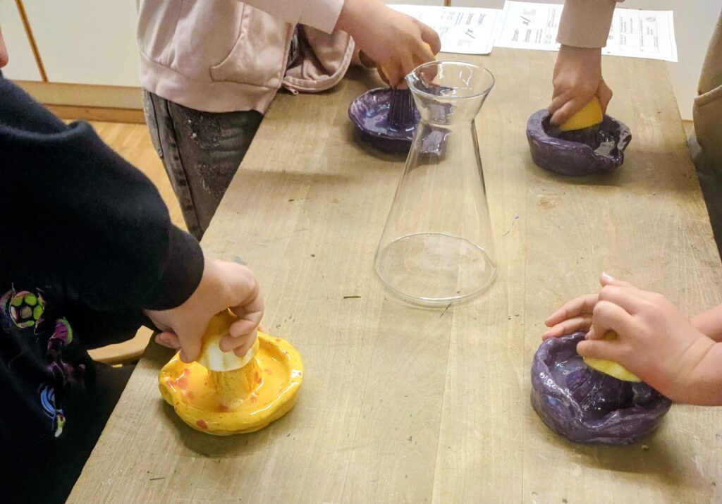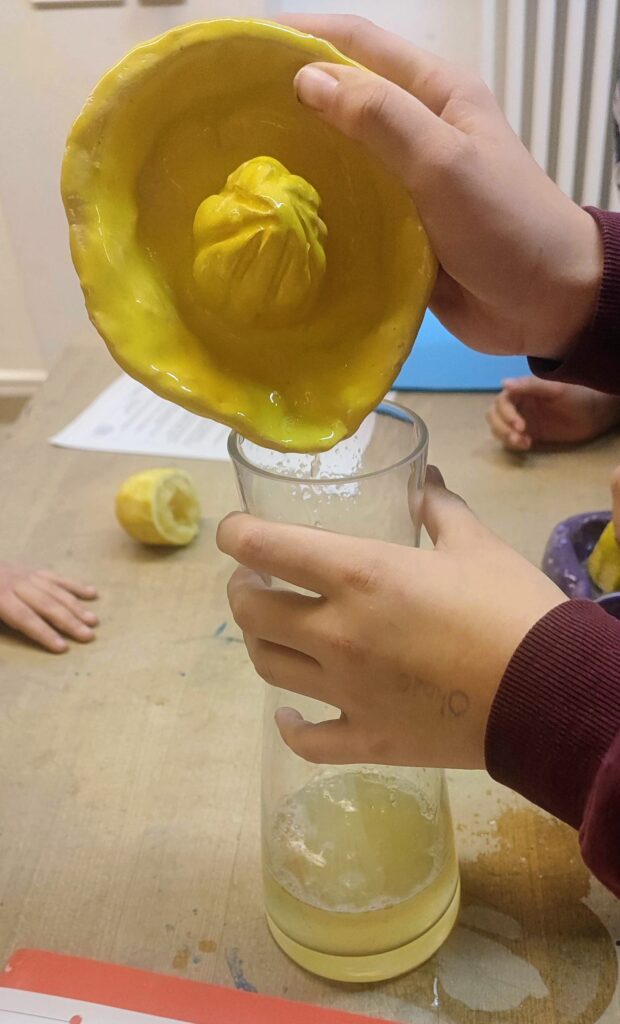 Die fertigen Zitronenpressen probierten wir gleich aus und stellten Zitronenlimonade her. Alle getöpferten Pressen funktionierten wunderbar.