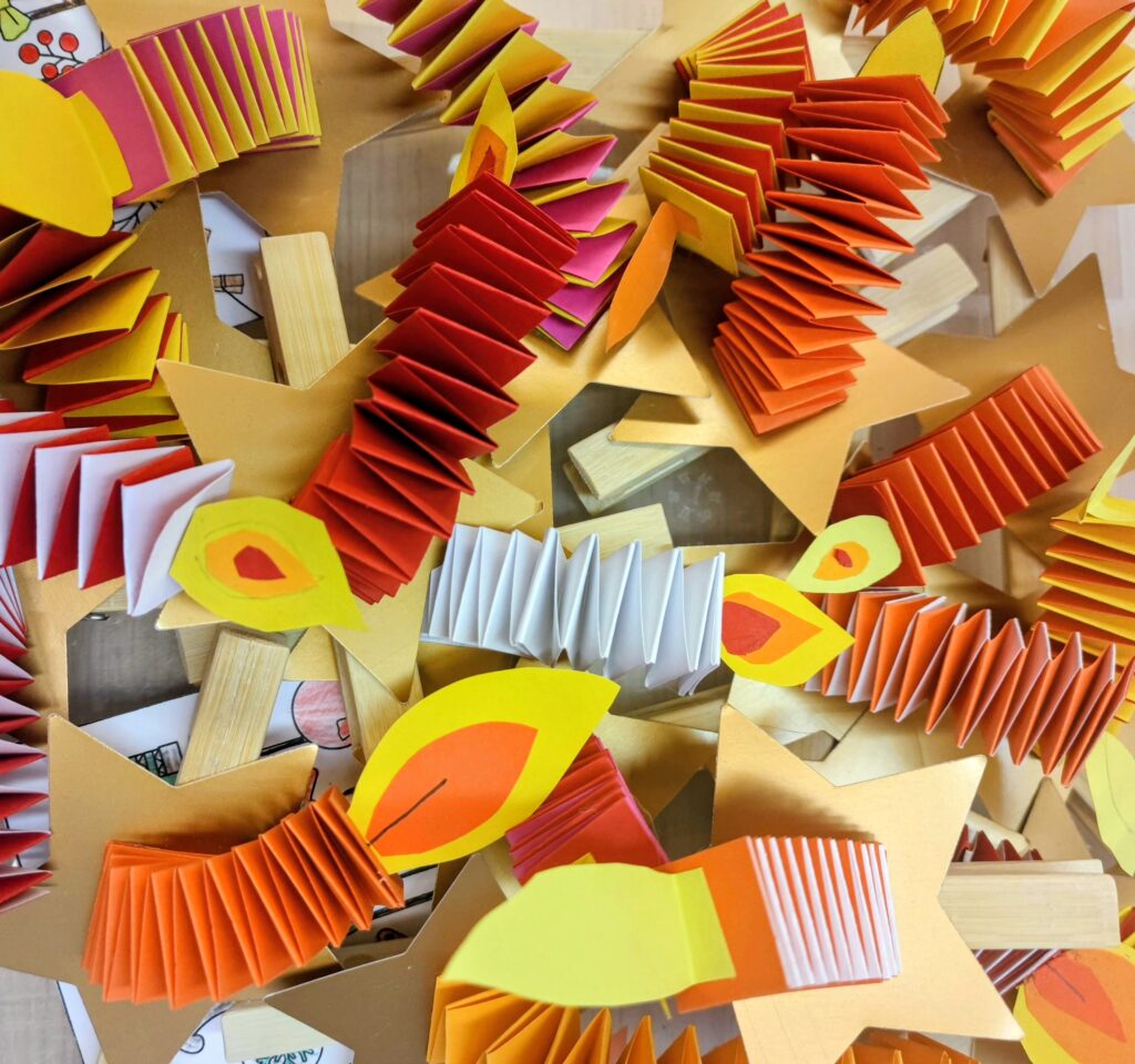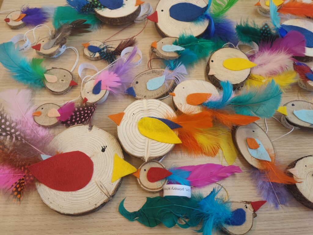 Die Kinder der zweiten, dritten und vierten Klassen bastelten Christbaumschmuck. Dieser wurde im November vom Donaubüro, Ulm, an 72 verschiedene Schulen in 15 verschiedene Länder geschickt.