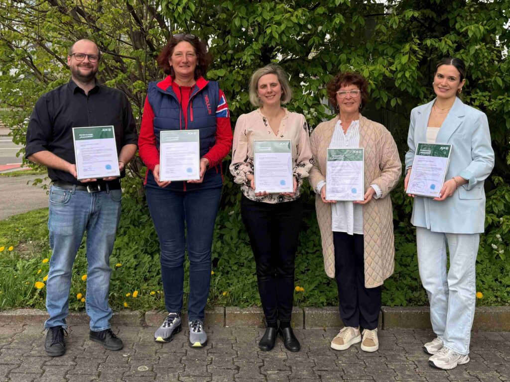 Das Programm wurde jetzt mit der Übergabe der Patenschaftsbestätigung durch Selina Botta von der AOK-Geschäftsstelle Neu-Ulm an die Schulleitungen der Grundschule Neu-Ulm-Offenhausen (Stephanie Klippstein), der Grundschule Neu-Ulm-Stadtmitte (Beate Altmann) sowie der Mark-Twain-Grundschule Neu-Ulm (Thomas Brenner, nicht auf dem Bild) gestartet.